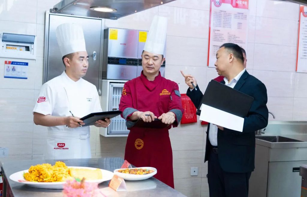 评委们穿梭在操作台前,仔细观察选手们的操作,从菜品的色泽、香气、味道、造型等方面进行全面、细致的评判。