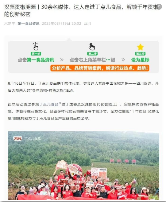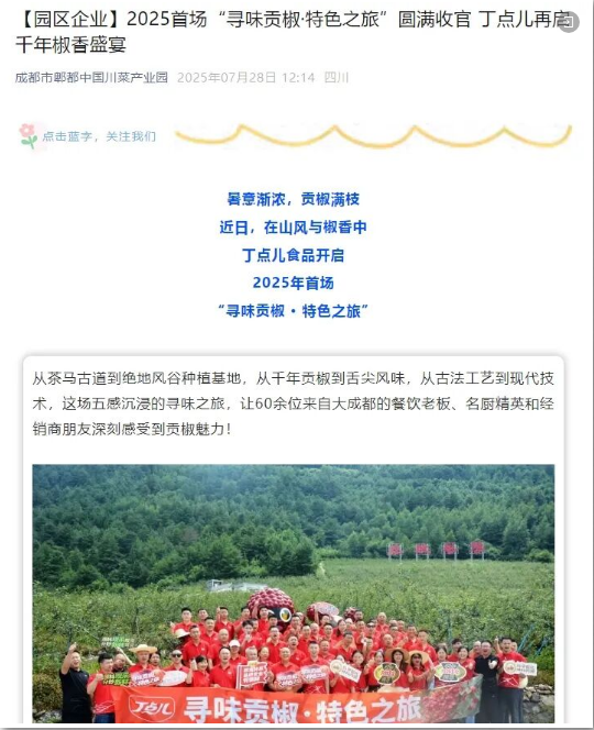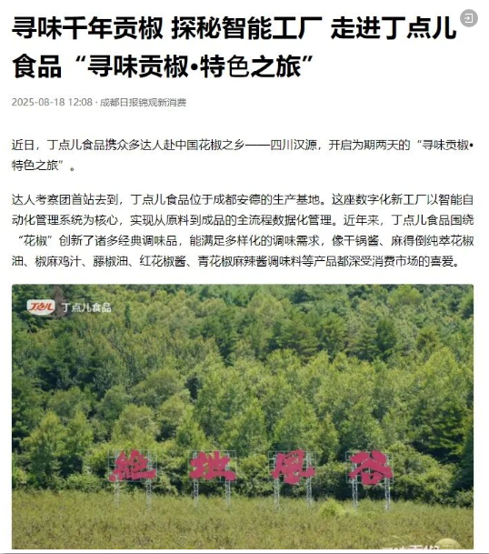 每一篇报道都是对品质的见证,每一次传播都是对匠心的认可。在丁点儿2025“寻味贡椒·特色之旅”活动期间,来自全国的数十家权威媒体、行业平台及自媒体博主,以笔为媒,共同记录了这场关于风味、文化与产业的深度对话。