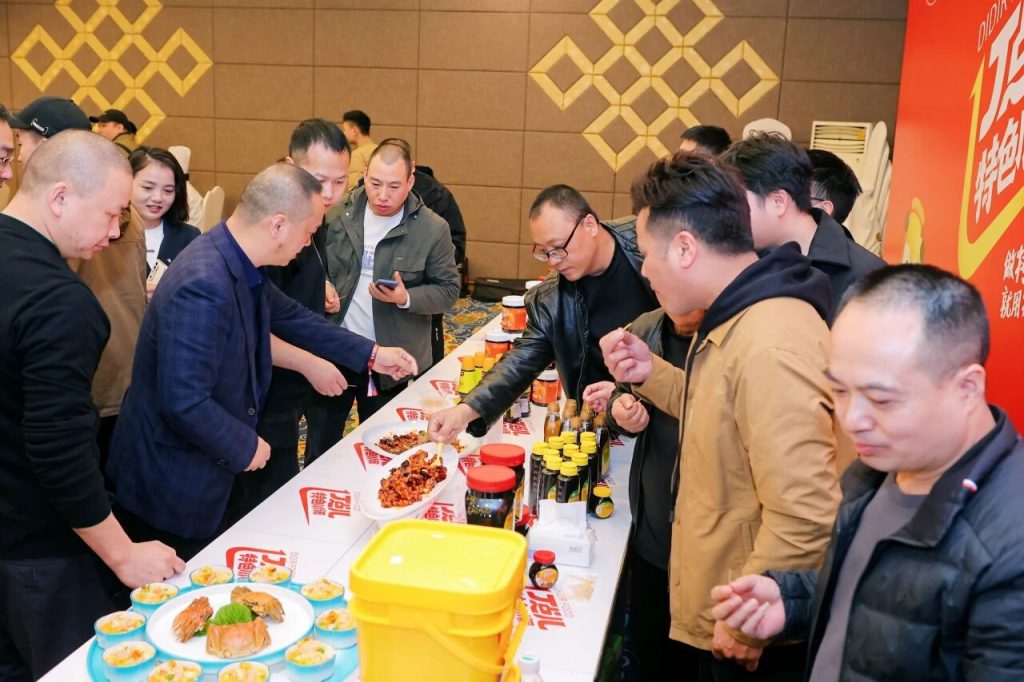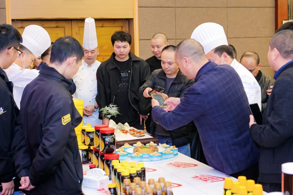 嘉宾们一边品鉴菜肴,一边与丁点儿工作人员热烈交流,纷纷对丁点儿高品质特色川调产品表现出浓厚兴趣,并现场达成合作。有厨师分享到:丁点儿的干锅酱层次感很丰富,味道浓郁,省去了自己调味的麻烦,直接提升出菜效率!