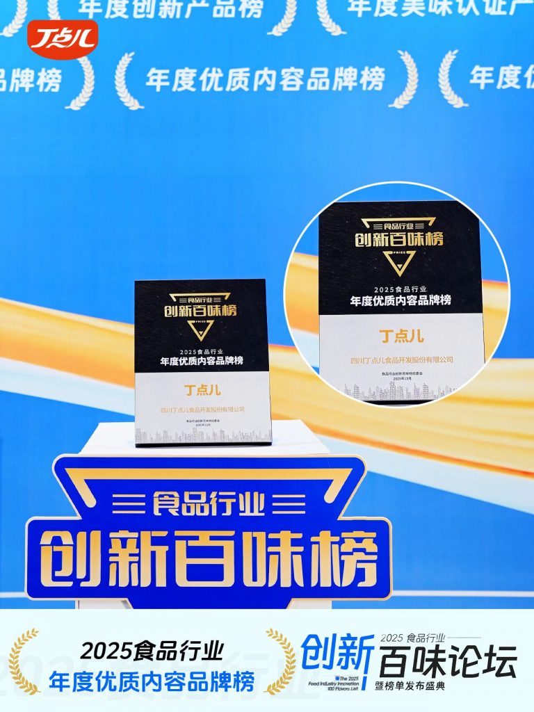 荣耀登榜!丁点儿荣获2025食品行业“创新百味榜”双项大奖